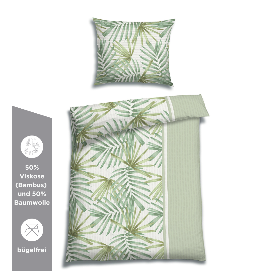 - Gewebe aus 50% Viskose (Bambus) und 50% Baumwolle für ein besonders schmeichelweiches Schlafklima