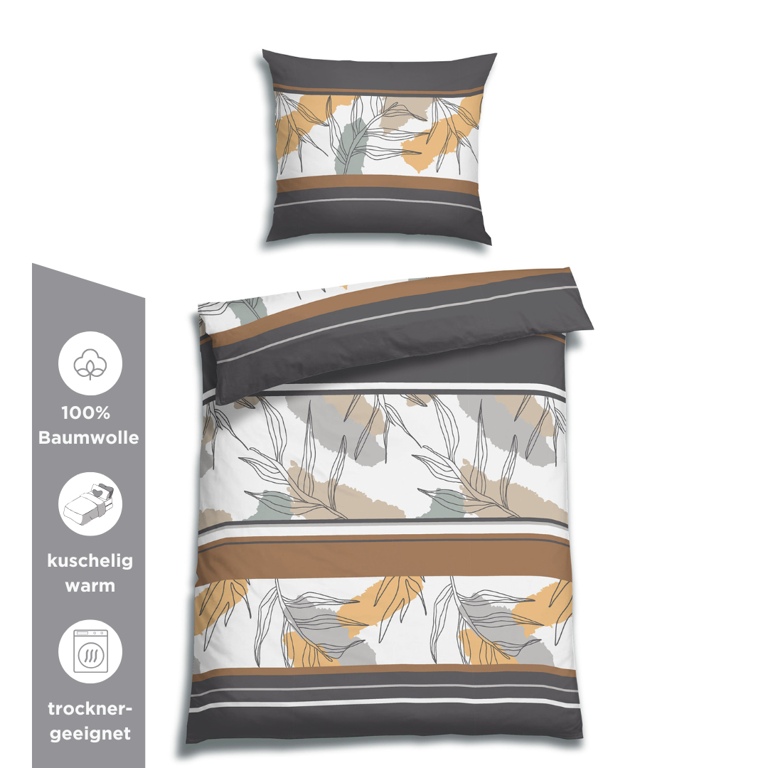 Die angeraute Oberflächenstruktur der Bettwäsche sorgt dafür, dass die Wärme gespeichert wird, ohne dabei unverhältnismäßig schwer zu sein.