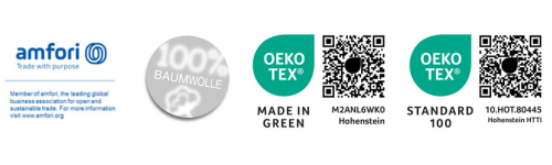 Zertifiziert nach OEKO-TEX® MADE IN GREEN, das rückverfolgbare Produktlabel für nachhaltig produzierte und humanökologisch unbedenkliche Textilien das auch auf dem OEKO-TEX® STANDARD 100 basiert.