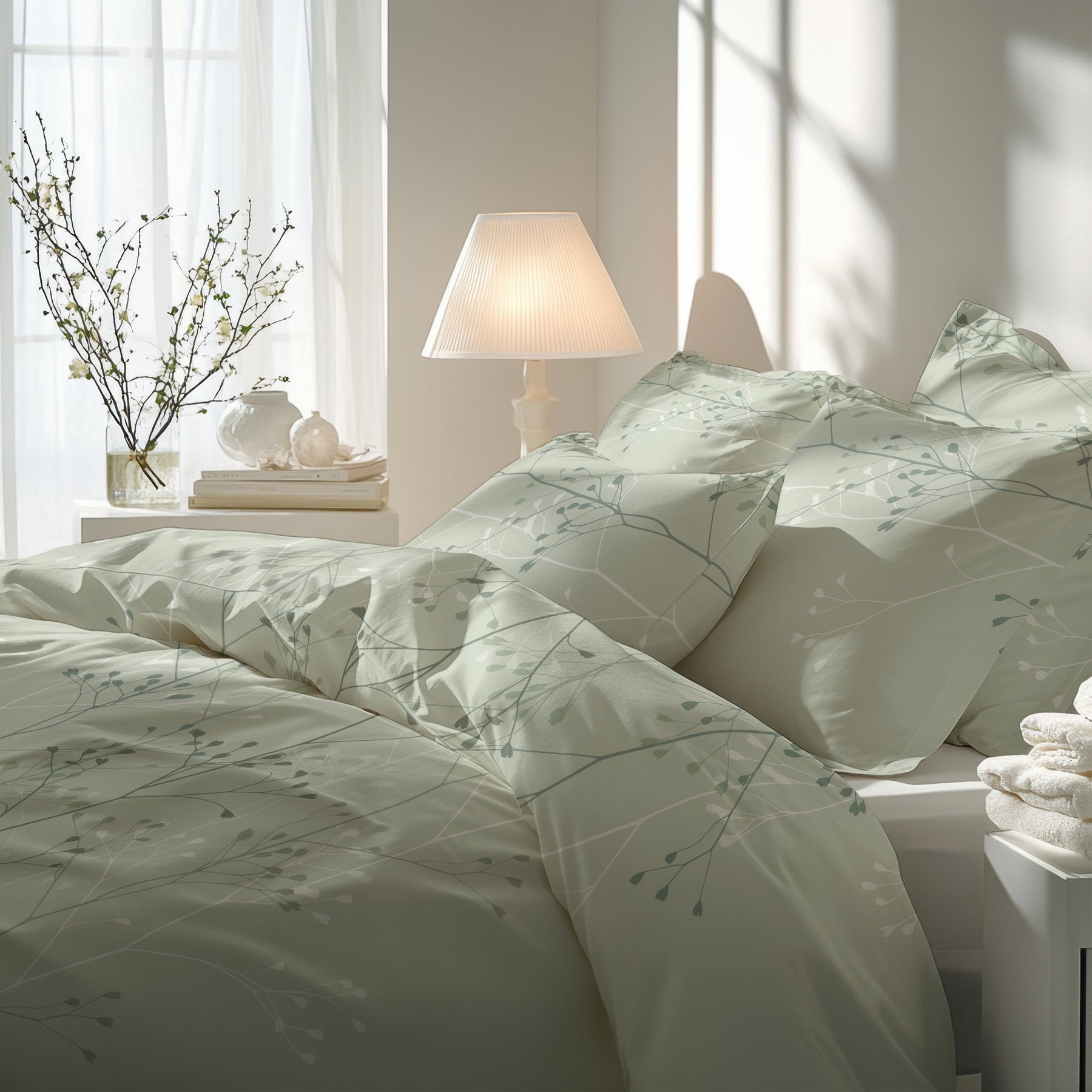 So entsteht eine Bettwäsche mit zurückhaltender Eleganz – leicht, ruhig und voller sommerlicher Atmosphäre, die ein Gefühl von Entspannung und Natur ins Schlafzimmer bringt.