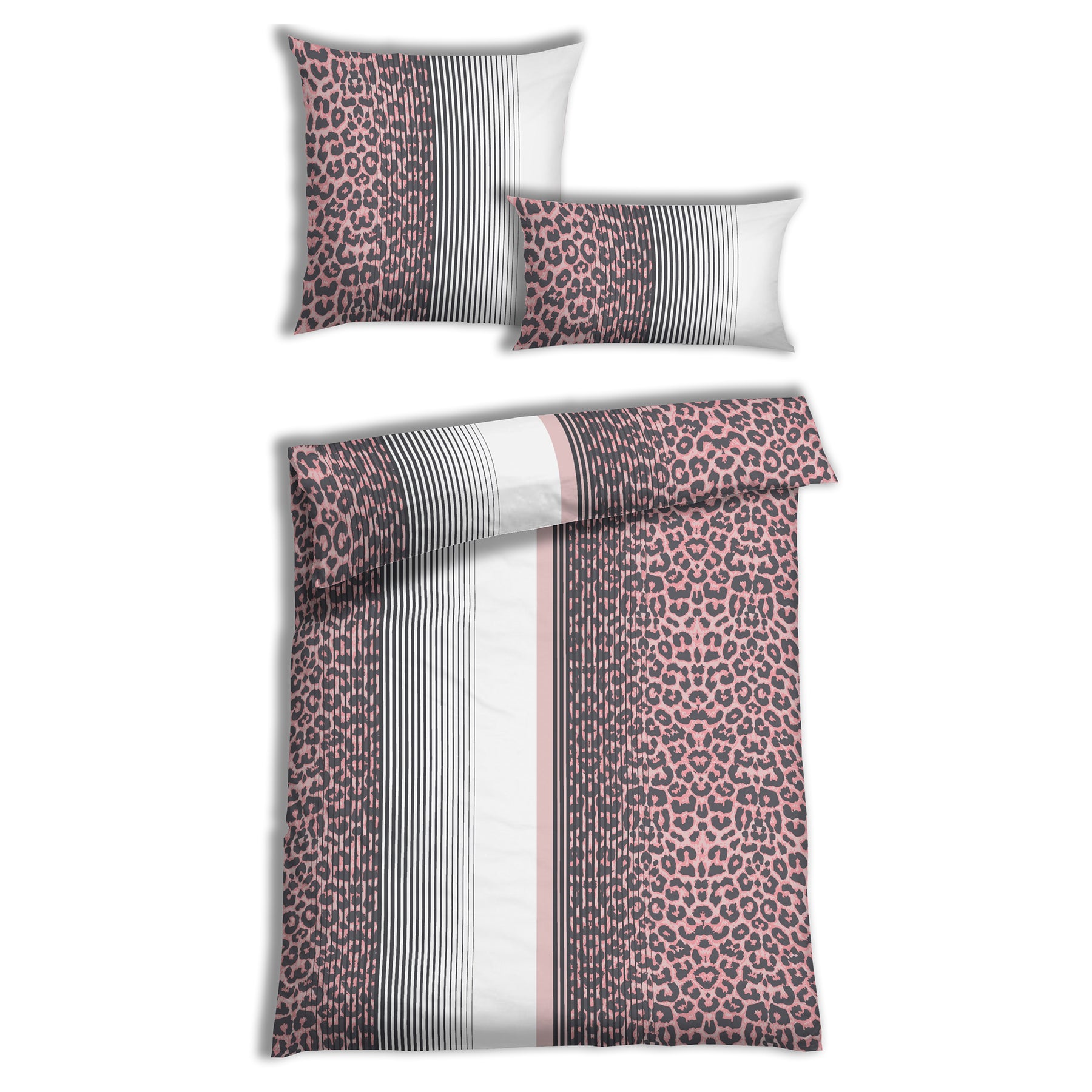 - kühne Kombination von Animal-Print und klaren Streifen in einer eleganten Farbgebung aus Rosatönen, Anthrazit, Schwarz und Weiß