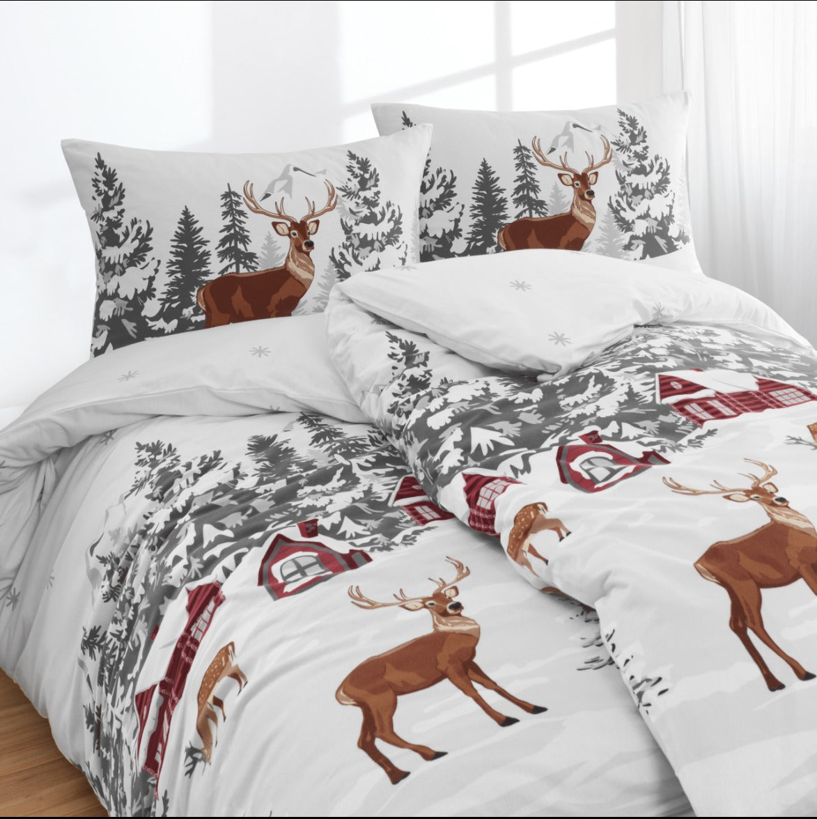 Die angeraute Oberflächenstruktur der Bettwäsche sorgt dafür, dass die Wärme gespeichert wird, ohne dabei unverhältnismäßig schwer zu sein.