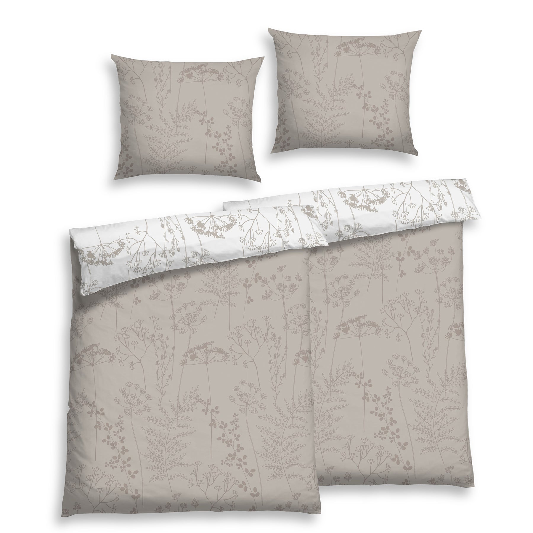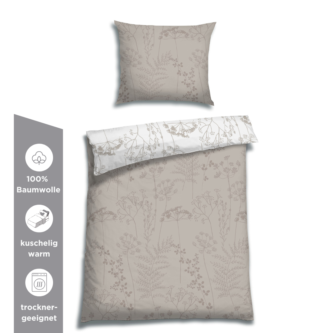 • stimmungsvolles Blumendesign als Wendedesign in edlen Beige-Leinentönen und Weiß
